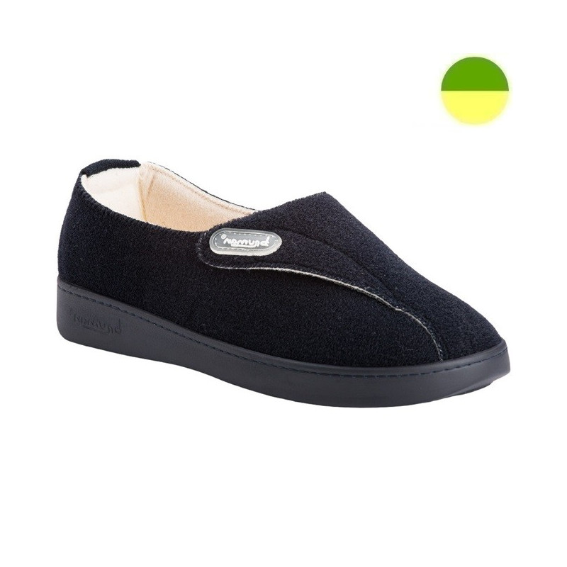 Chausson femme extensible, lavable, à grande ouverture, réglage sur l'avant pied par bande agrippante.