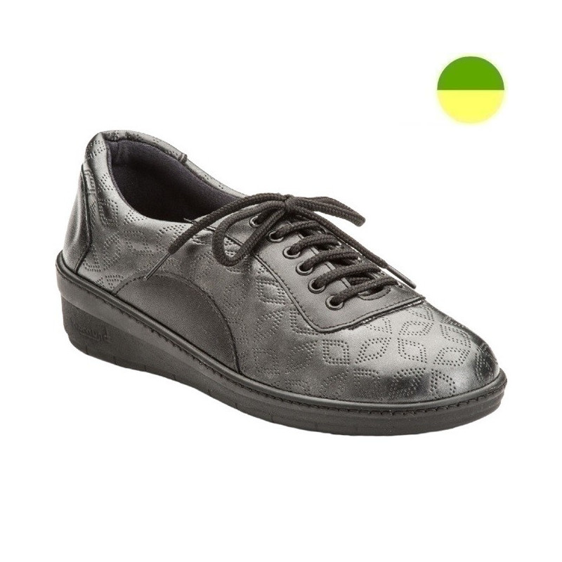 Citadine femme, extensible à l'avant, grande ouverture, réglage sur le coup de pied par lacet, bon maintien et doté d'un bourrelet de confort.